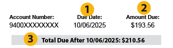 This is your total payment due by your due date. If you had an existing balance for a previous bill, that amount—plus any applicable late fees—has been included in this total.